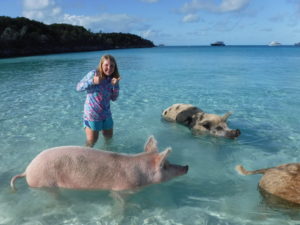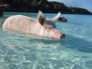 The next morning, we decided to see the swimming pigs. Here’s the deal… As the story goes, a handful of pigs got loose on Big Major Cay (right next door from Staniel Cay) and have been living there ever since. They have now been conditioned to swim out to tourists to get food / snacks. Here are some pics of swimming pigs.
