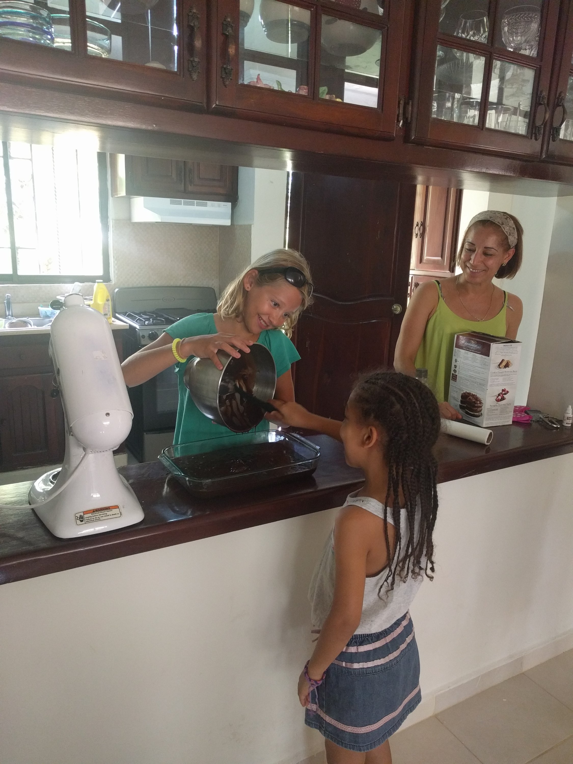 When we got home, back to our boat, I took a quick nap. In half an hour we headed up to meet the marina owner at his restaurant to have dinner together. When we got there, his family pulled up. Elena was 6 so we played together a lot. Although I speak English and she speaks Spanish, we both had a great time and we became great friends! In fact, we planned a get together of brownie making for the next day…