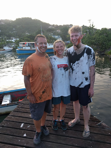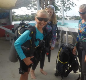The next day, we woke up bright and early only to find rain. We still got in our dinghy and headed to ScubaTech. When we got there, the rain calmed down. We loaded up the dive boat with our gear and Joshua joined us a few minutes later. We started heading to a wreck, named the Veronica! We went down to the wreck by pulling ourselves down a line attached to dive boat and the wreck. From the top, it just looked like a sunken boat and not very interesting. However, once we got all the way down, it was beautiful and so cool. There were lots of different colored fish. We dove into the wreck and swam through a few doors which was really cool. The one bad thing was fire coral that I accidentally touched. It hurt a lot but it’s better now. The coolest part of the wreck was seeing the old anchor and windlass (a boat part to help pull up the anchor) and all of the fish swimming in and out of the anchor. Once we surfaced, we stayed on the dive boat for about an hour. We ate buttery popcorn and juice— yum the juice was cold! After we spent enough time at sea level (so any extra nitrogen got out of our bodies), we headed over to a very pretty reef named Purple Rain! It was gorgeous— the coral was millions of colors and there were lots and lots of fish. I did flips in the water and it was so fun! Unfortunately, my air went down to about 40 bars so we had to go back up. Our last dive was so fun!! We went back to the dive shop and got PADI certified—woo-hoo!! I can’t wait for our next dive!