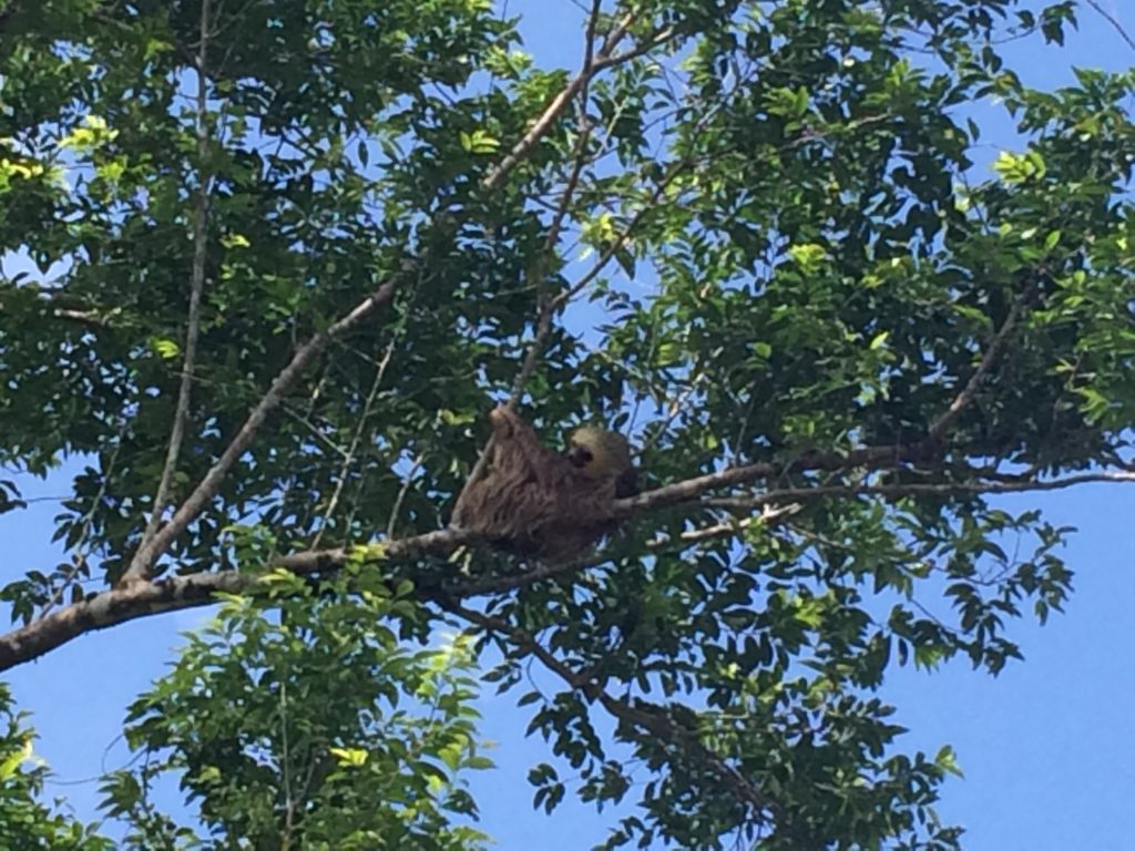 Heidi pointed to the tree right in front of us. I looked up and oh my gosh, like 10 feet up, it was a sloth. It was like the cutest thing. It was just like hanging out. It slowly turned it’s head towards us looked at us then went back to sleep. The sloth kind of looked like a chubakka, ET, and a cute puppy mixed together. After watching it for a bit, we started on our ride again.