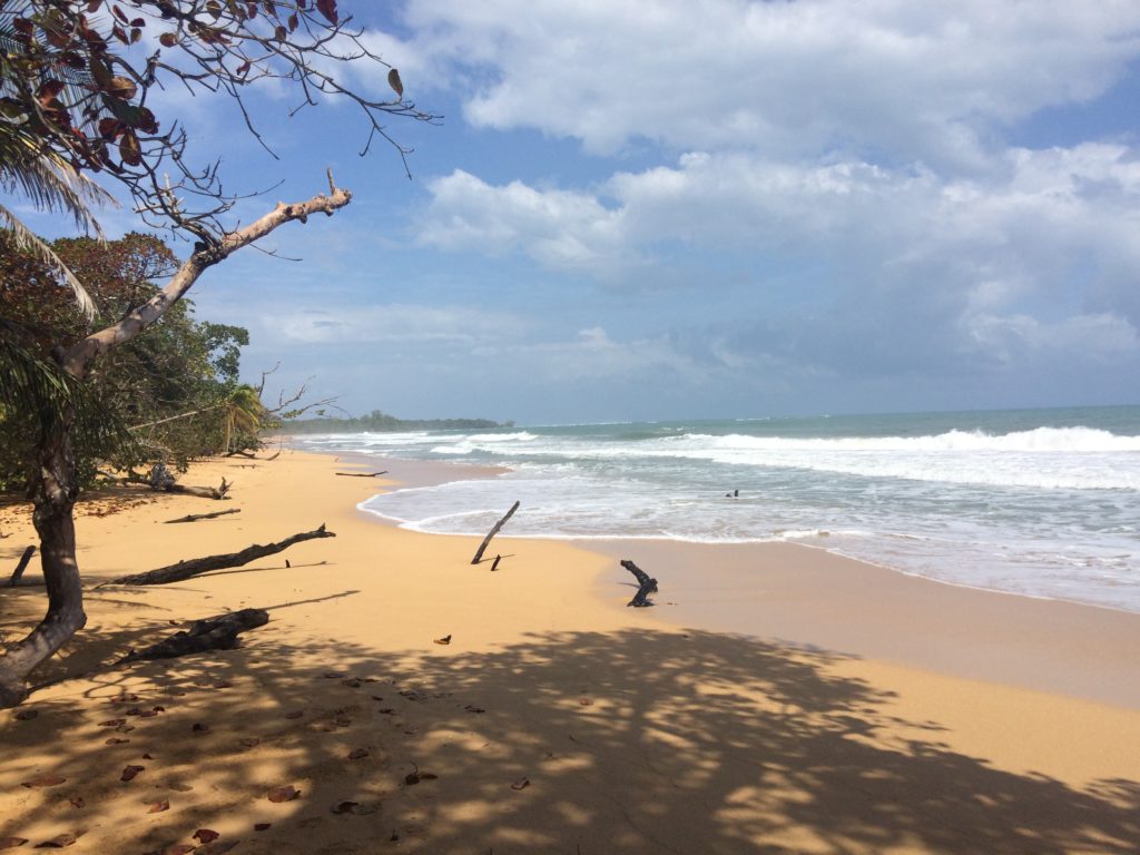 Yesterday was a crazy and fun day! We biked from 9:30 until 5 pm. We biked through the streets, walked (us and the bikes) through beaches, saw a sloth and monkeys, biked through the jungle on a possibly bike path, went to the natural Piscina (pool), got down poured on, had a few reealllllly muddy falls, and so much more.