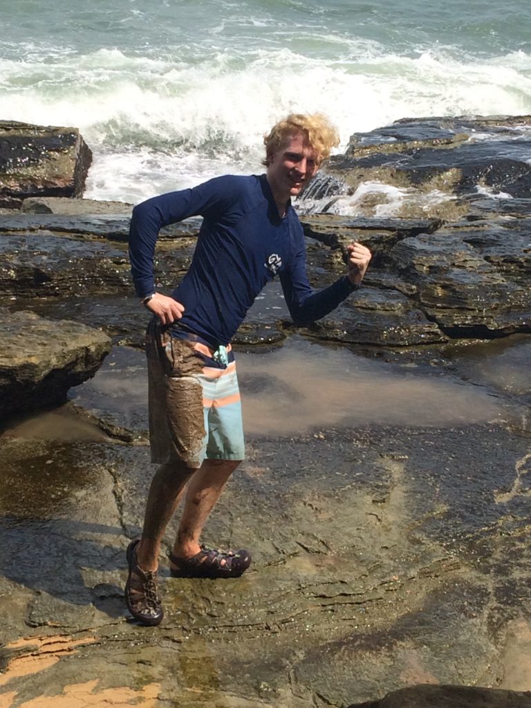 “Whooooaaaaaa!” Fenton looked up and a just the wrong time. There was a huge thing of mud right there. His bike fell over, and left him in a huge puddle of mud. A whole side of him was covered in mud! It was very funny! He posed for a few pictures then washed off in the ocean.